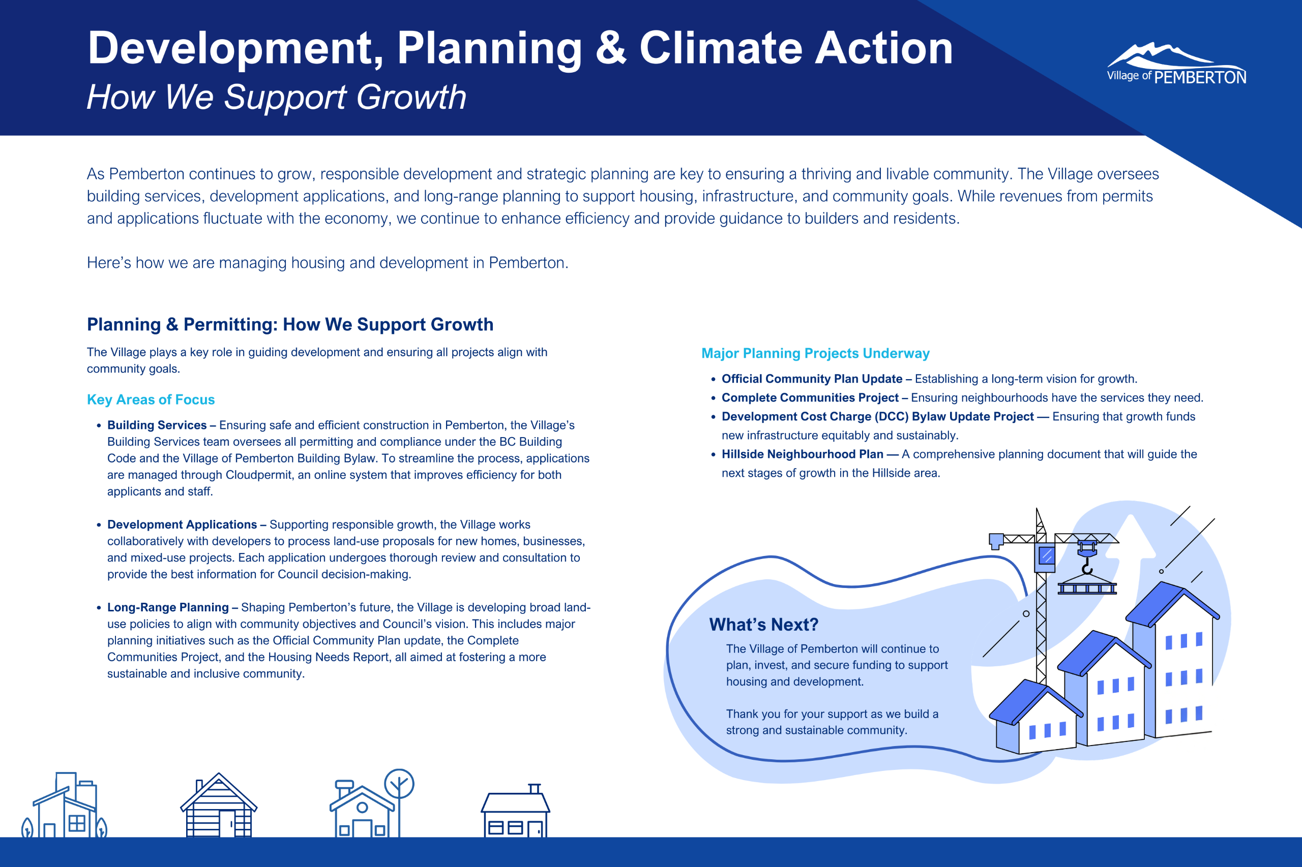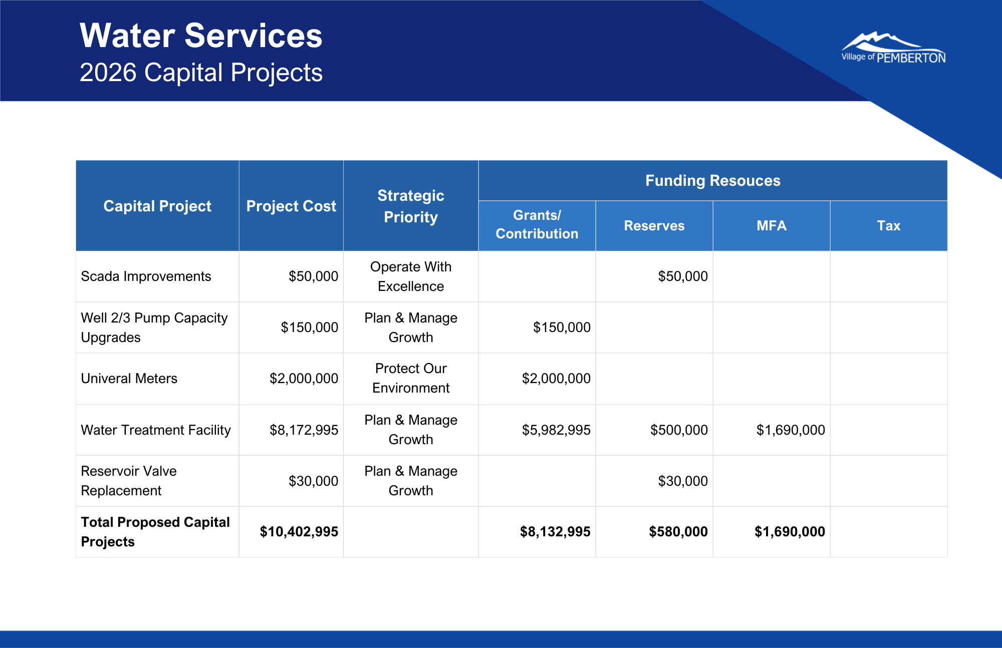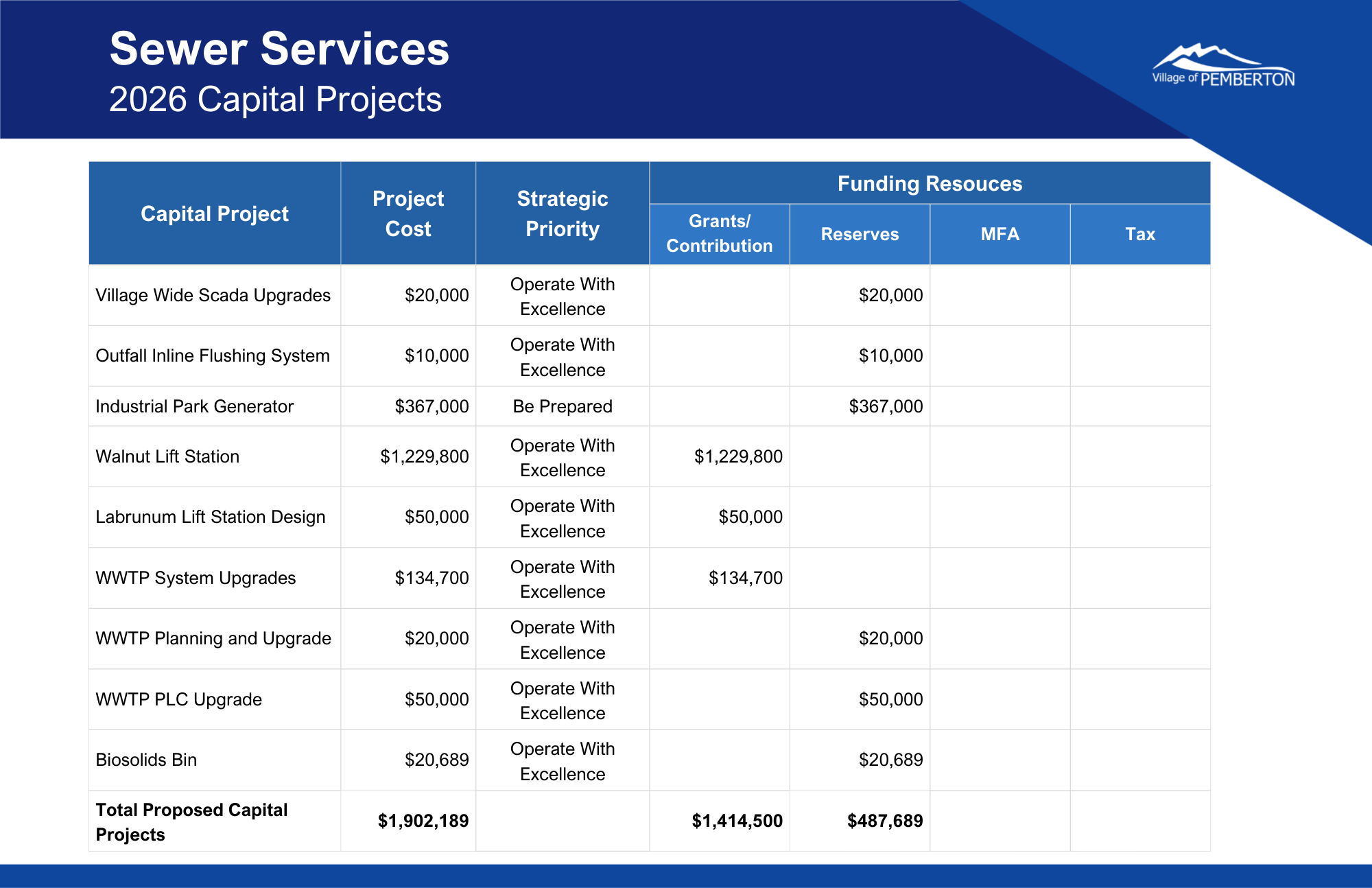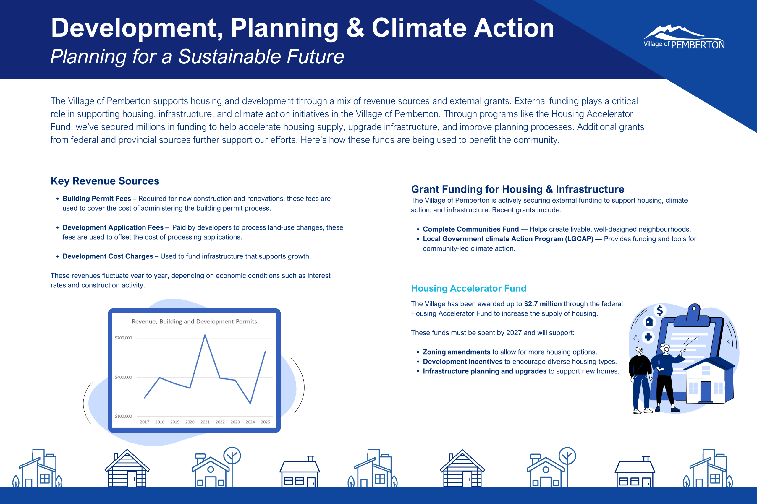 Each year, the Village develops an annual budget to meet community needs and balance the delivery of services with property taxes and user fees.